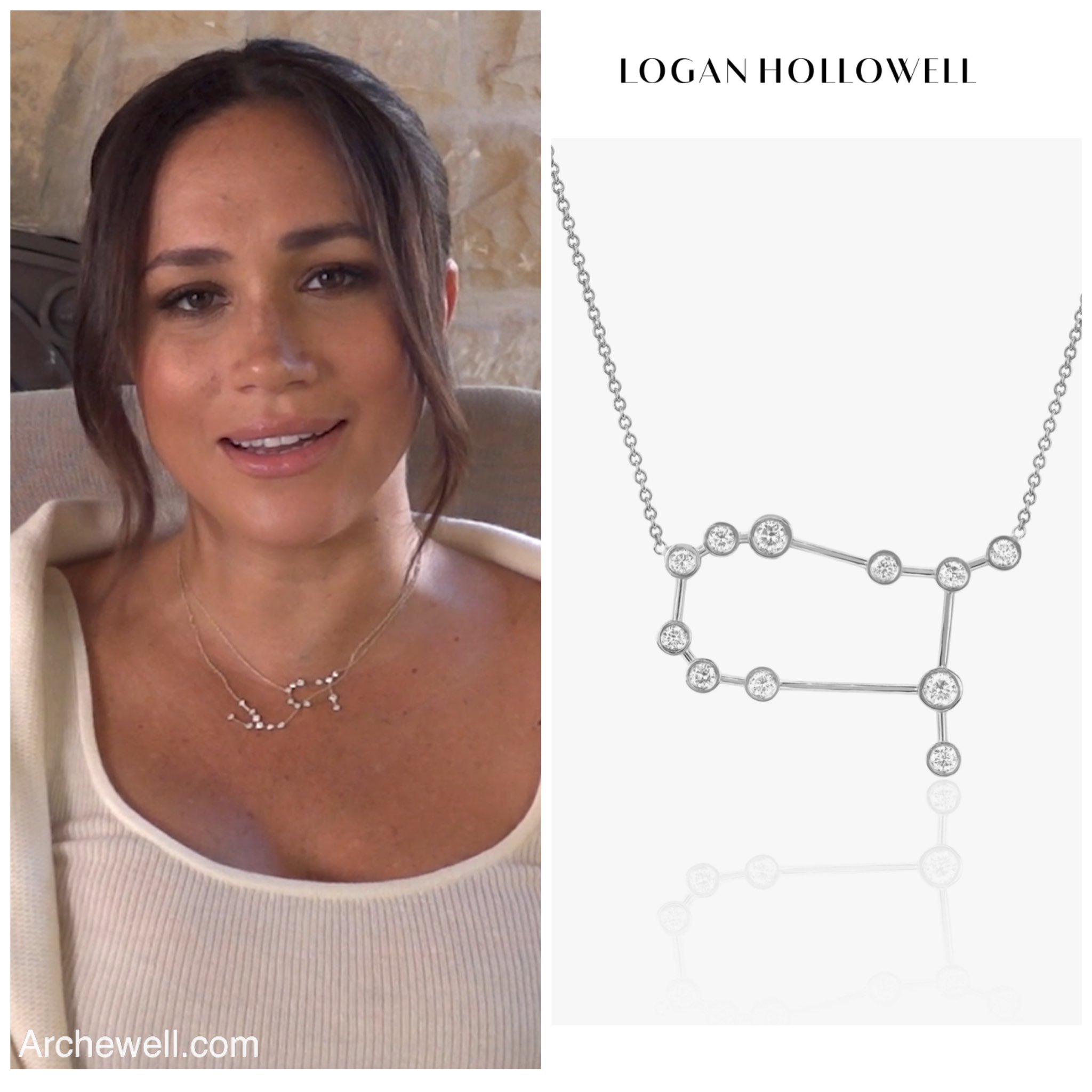 Rihanna is rarely seen without her Briony Raymond Jumbo Pisces medallion a blingtastic emblem dotted with diamonds while Meghan Markle recently wore Logan Hollowell Taurus and Gemini. Celestial Jewelry Zodiac Sign Necklace. Logan Hallowell Diamond Constellation Necklace 160000 Here it isthe very necklace Markle wore in her first public appearance since giving birth to her daughter Lili.